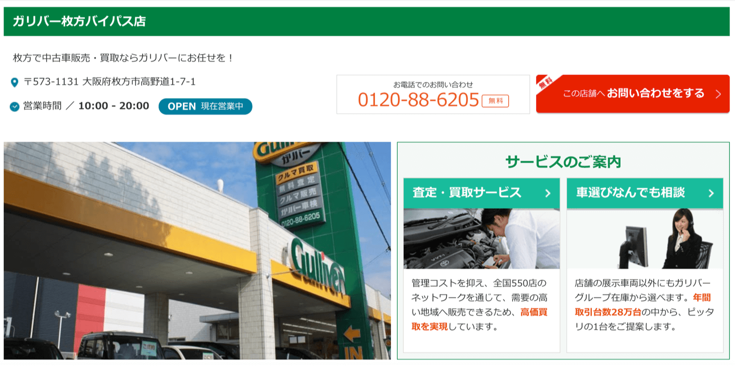 ここでは枚方市内に出店しているガリバーの店舗情報をご紹介します。