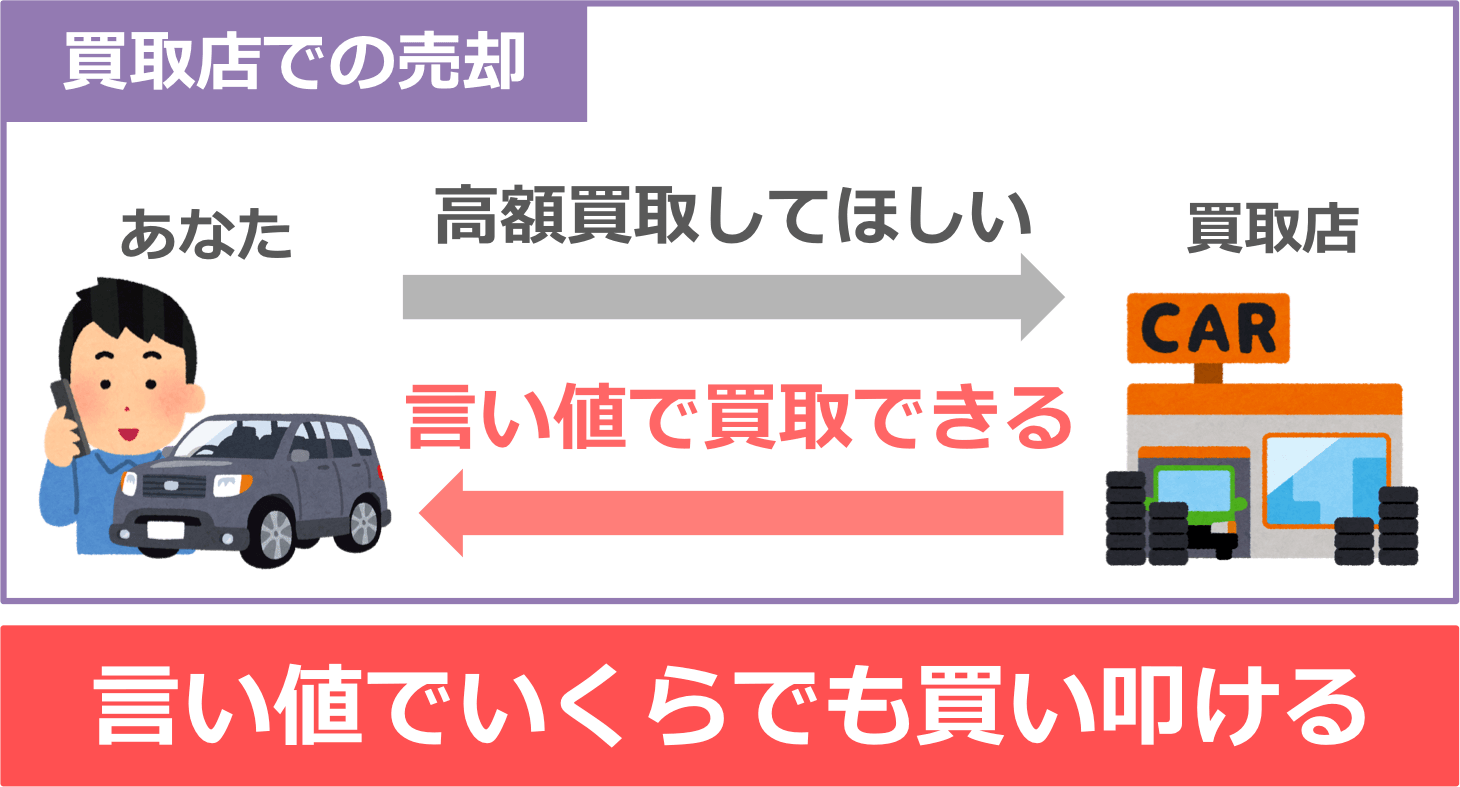 買取店としては、あなたが高額で買取りして欲しくても、1対1の交渉となるため言い値で買い叩けます。